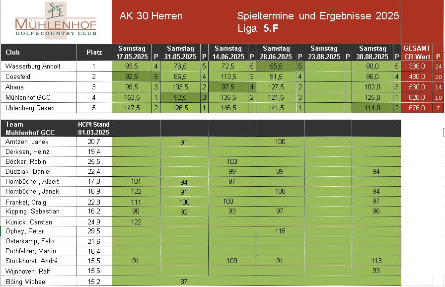 Die Mannschaften des Mühlenhof Golf & Country Club e.V
