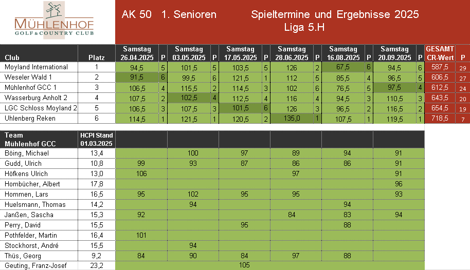 Spieltermine und Ergebnisse – Herren AK 50 – 1