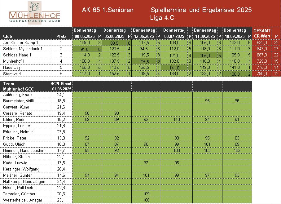 Spieltermine und Ergebnisse – Herren AK 65 – 1