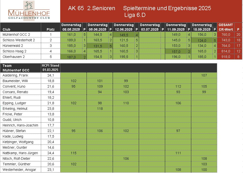 Spieltermine und Ergebnisse – Herren AK 65 – 2